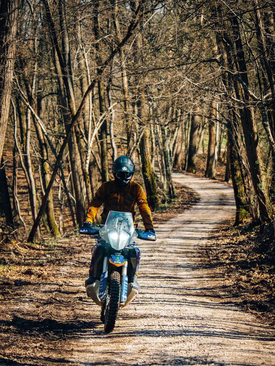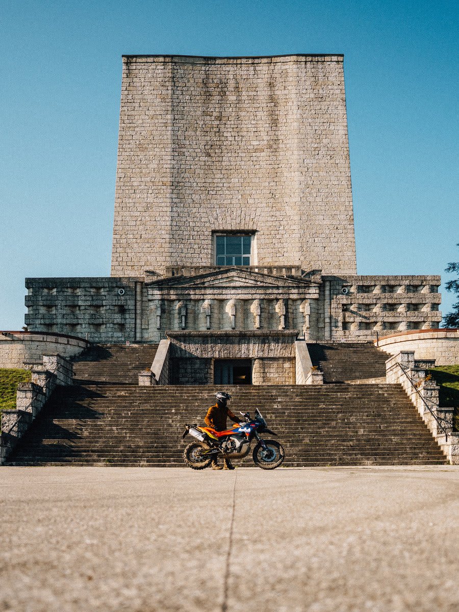 マキシエンデューロやライトオフロードを愛する私たちにとって、モンテッロは驚きに満ちた宝庫です。穏やかなカーブ、タイヤに優しく触れるダートロード、深い静寂、そして耳を澄ませる者の内側に今も響き続ける過去があります。