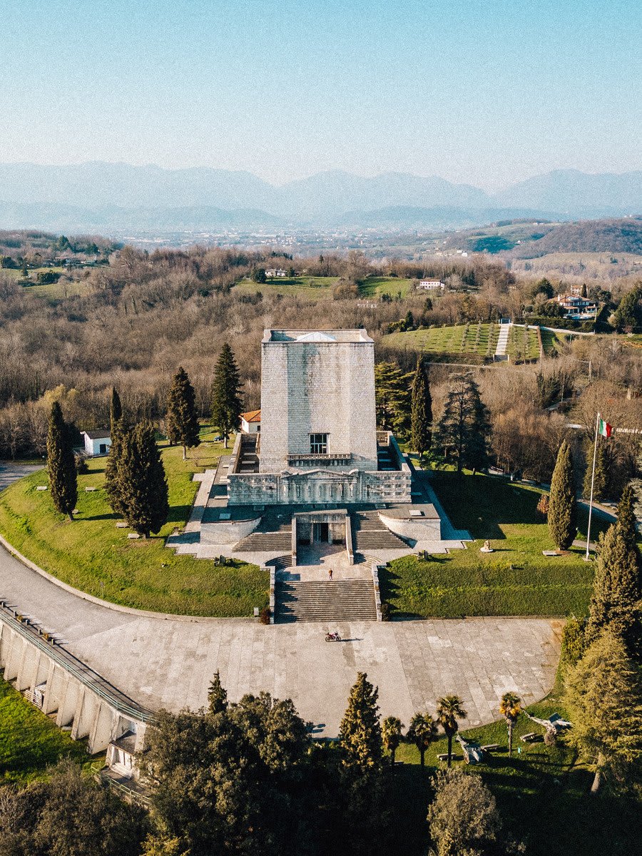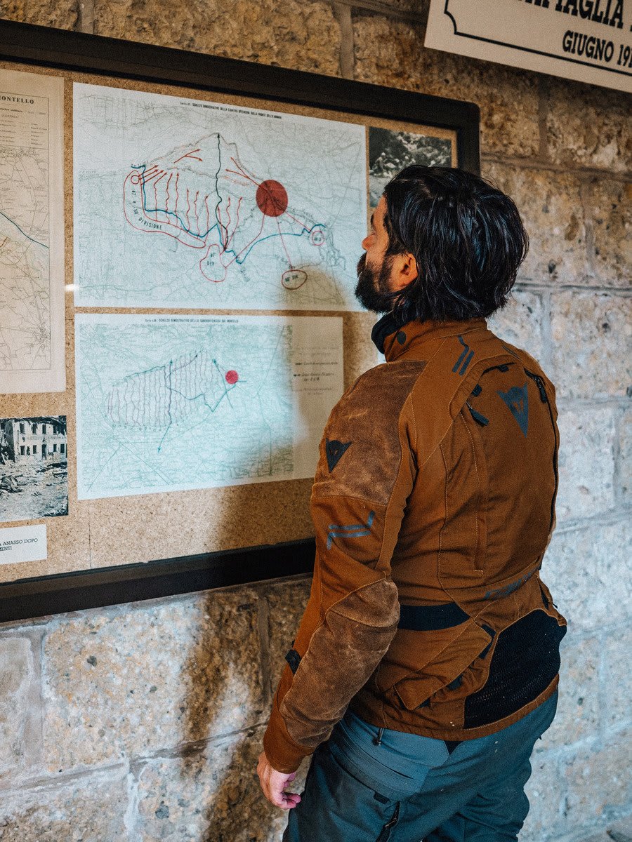 モンテッロでのバイクツアーは、Nervesa della Battagliaから始めます。「戦いのネルヴェーザ」というその名が、すでにこの地の空気を物語っています。ここでは戦争が塹壕を掘り、大地と記憶に今も消えない傷跡を残しました。