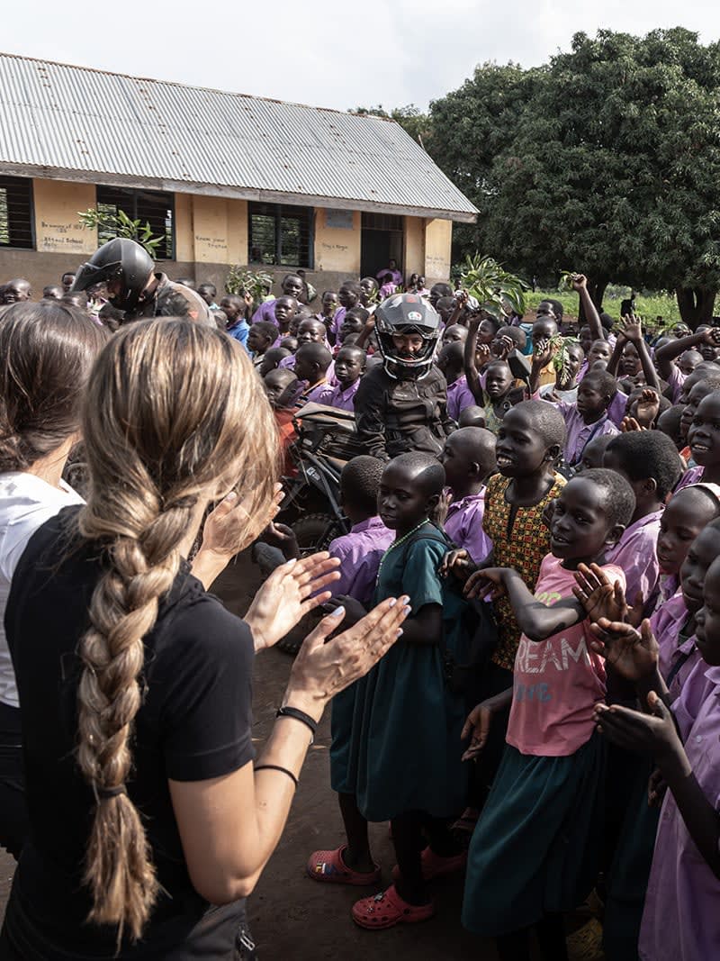 いくつものウガンダの学校を訪れると、子どもたちは暗闇さえ照らすような笑顔で迎えてくれました。バイクで到着すると、歌い、踊って歓迎してくれるのです。その瞬間は、私の人生で最も心を打たれた体験のひとつとして、深く胸に刻まれています。