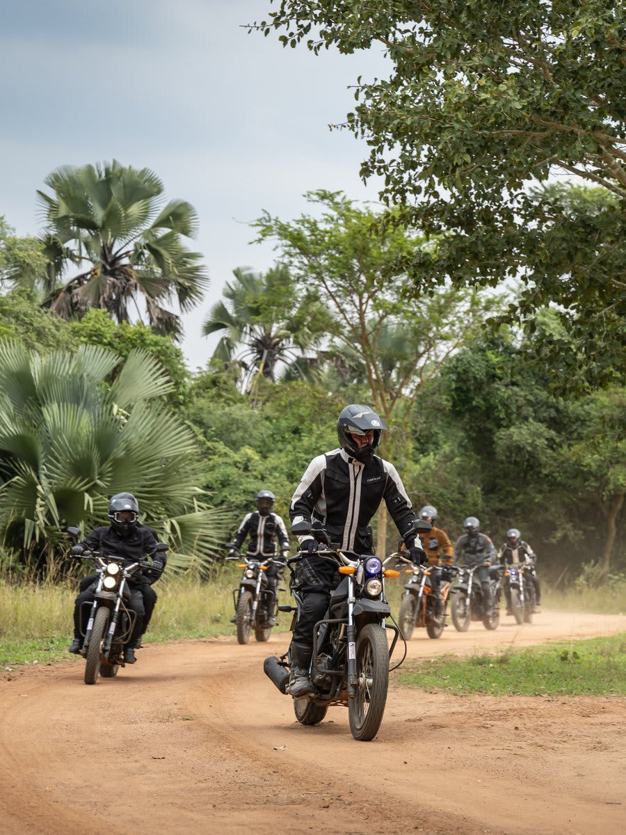 人道支援に充てた最初の数日を終えた後、私たちはウガンダの原生自然へと分け入ります。アフリカの動物たちに囲まれながら、広大な平原をバイクで走り抜けます。
