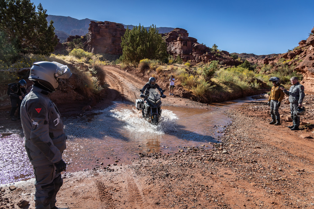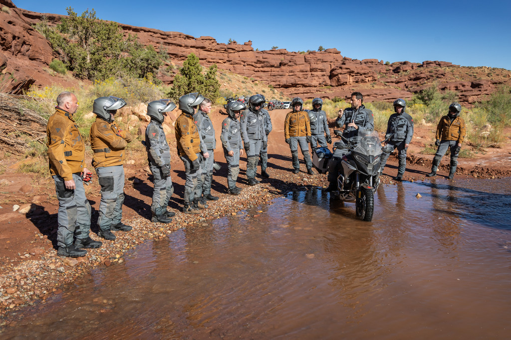 さらに高度なレベルに進むと、小川やより大きな水路を渡ることは、浅瀬へのアプローチの仕方を学ぶ絶好のチャンスです。200キロを超える重量のバイクでは簡単なことではないため、あらゆる状況での対処法を知ることが重要です。ダイネーゼのトレーニングキャンプでは、バイク上での正しい姿勢と速度の維持方法や、スロットルコントロールの管理方法も教えています。