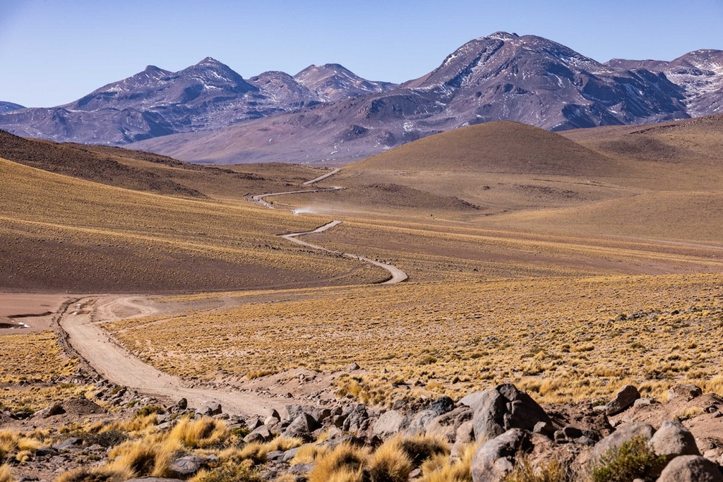 道のりはまだまだ続く。小さな集落、潟湖、2つの異なるサラール、そして最初の南米ダカールで目にし、夢見た景色 - 深い藍色の湖、草を食むラマ、背景の火山、この楽園を辿る未舗装の道 - を通過する。アンデス山脈のこの地域を走り感動しない人はいないでしょう。