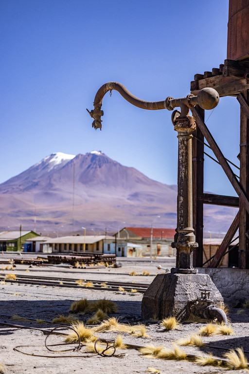 満天の星空、古い貨物列車が走る鉄道、数マイル先にある活火山オラグエ、夜の星空に映える2つの白い十字架がある歴史的なサンタントニオ礼拝堂…。-13℃の寒さが骨にしみるよりも、この場所を堪能し、写真を撮りたいという衝動の方が強かった.…。