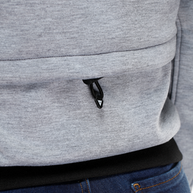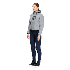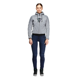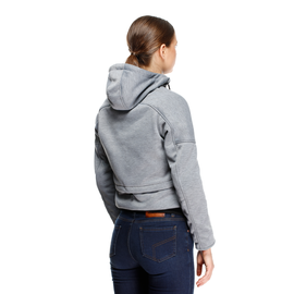 アラミド繊維で補強された、柔らかいフリース素材のレディース用モーターサイクルパーカー。現代的でアクティブな印象を演出します。
