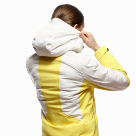 防水性と通気性に優れたAerosense-DryストレッチシェルとREPREVE®リサイクルパディングを組み合わせたレディースパデッドジャケット。